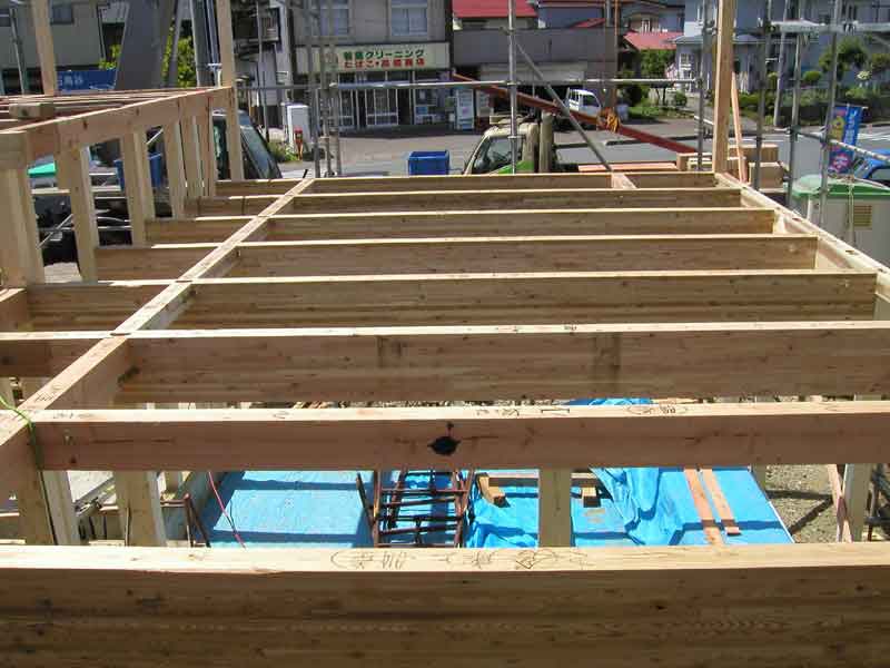 2日目太い梁を90センチ置きに配置します(^_^)v
